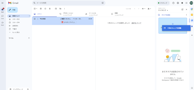 ここで、ToDoアプリを別に起動するのではありません。GmailのサイドパネルのToDoを起動し、メールをクリックしてサイドパネルのToDoにドラッグアンドドロップしてください。