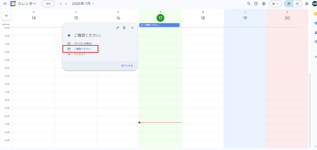 日付を入れたそのToDoは、Googleカレンダーを開くと、作業日のToDo欄から確認することができます。