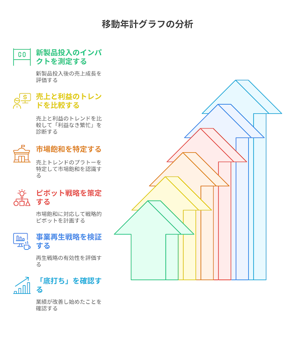 • CHECK(評価): 戦略的行動の効果を評価する主要なツールとして、移動年計グラフそのものを使用します。